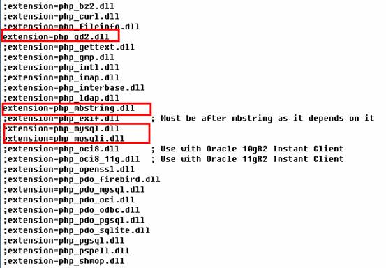 5、extension=php_gd2.dll(PHP的GD庫支持,必選 去掉前面的“;“)