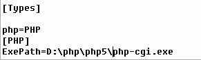 ExePath=D:\php\php5\php-cgi.exe // (這里的路徑是你的php解壓后的路徑)
